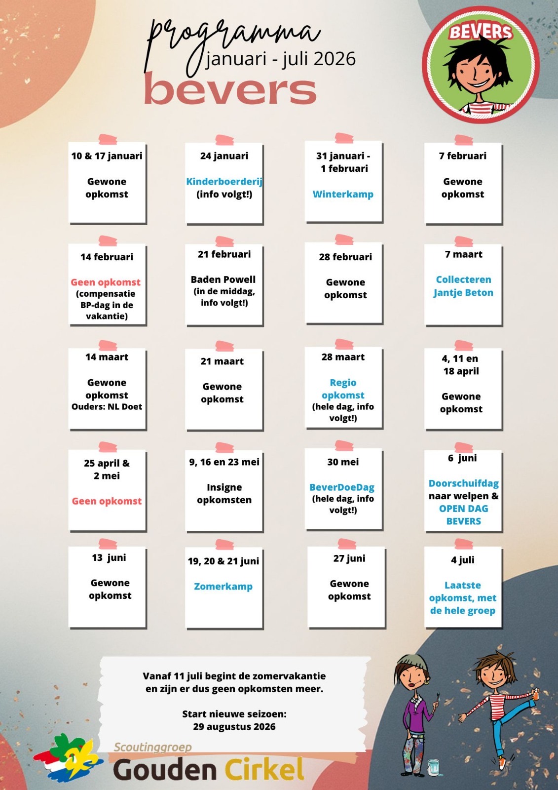 De Bevers van Scouting Gouden Cirkel komen elke zaterdag bij elkaar. Bevers is de naam voor de jongste speltak en de jongens en meisjes hebben de leeftijd van 4,5 tot en met 7 jaar. Ze zijn herkenbaar aan hun rode beverblouse en die is voorzien van de afbeelding van Stuiter. Stuiter is een bever van ongeveer 6 jaar die elke zaterdag komt spelen in Hotsjietonia, een dorp waar mensen zoals Rebbel, Stanley Stekker en bas bos wonen. Elke week beleven ze de leukste, spannendste en gekste avonturen samen met Stuiter!